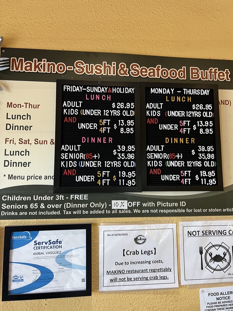 Makino Sushi & Seafood is a top-rated buffet and sushi bar located in Las Vegas, NV. This casual yet elegant spot is perfect for all occasions, offering a wide range of options for every type of diner. From crisp salads like Seaweed Salad and Salmon Salad, to hot entrees like Tonkatsu and Udon, and decadent desserts like Strawberry Mousse and Chocolate Chip Cookies, Makino Sushi & Seafood has something for everyone. The restaurant also offers vegan and vegetarian options, as well as beer and wine selections. The cozy atmosphere, friendly service, and delicious food make this spot a must-visit. Don't miss out on the opportunity to experience the flavors of Makino Sushi & Seafood.